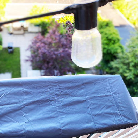 Der Überzug ist aus Polyester hergestellt und hat einen Gummizug integriert, sodass er problemlos auf deine Balkonbar passt. Das Material ist doppelt beschichtet, wodurch sichergestellt wird, dass dein Überzug wasserfest, feuerhemmend und UV-resistent ist.