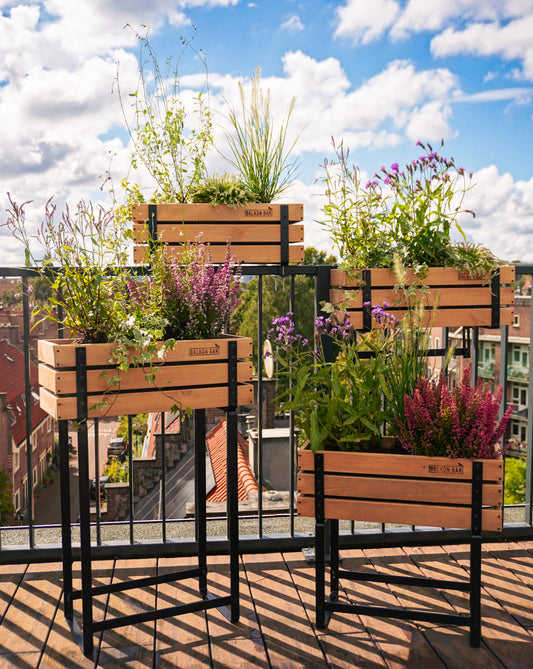 Mit der Balkonbar kannst du deinen Balkon in ein Homeoffice verwandeln, einen Ort zum Relaxen kreieren oder den perfekten Ort entstehen lassen, um dein Glas zu erheben. Die Balkonbar ist ein praktisches Paket bestehend aus 4 hölzernen Barren, einem Halterungsset und Befestigungsmaterial. Wir haben unterschiedliche Halterungen für so gut wie jeden Balkon entwickelt.