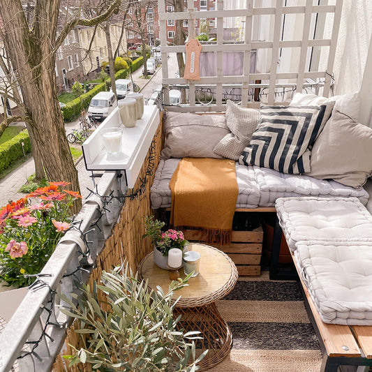 Bitte merke: die Mini Balkonbar passt lediglich auf rechteckige Balkongeländer. Wenn du ein anderes Geländer hast, wähle bitte unsere Standard Balkonbar (90x30 cm).