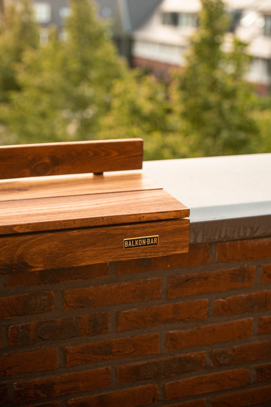 Mit der Balkonbar kannst du deinen Balkon in ein Homeoffice verwandeln, einen Ort zum Relaxen kreieren oder den perfekten Ort entstehen lassen, um dein Glas zu erheben. Die Balkonbar ist ein praktisches Paket bestehend aus 4 hölzernen Barren, einem Halterungsset und Befestigungsmaterial. Wir haben unterschiedliche Halterungen für so gut wie jeden Balkon entwickelt.